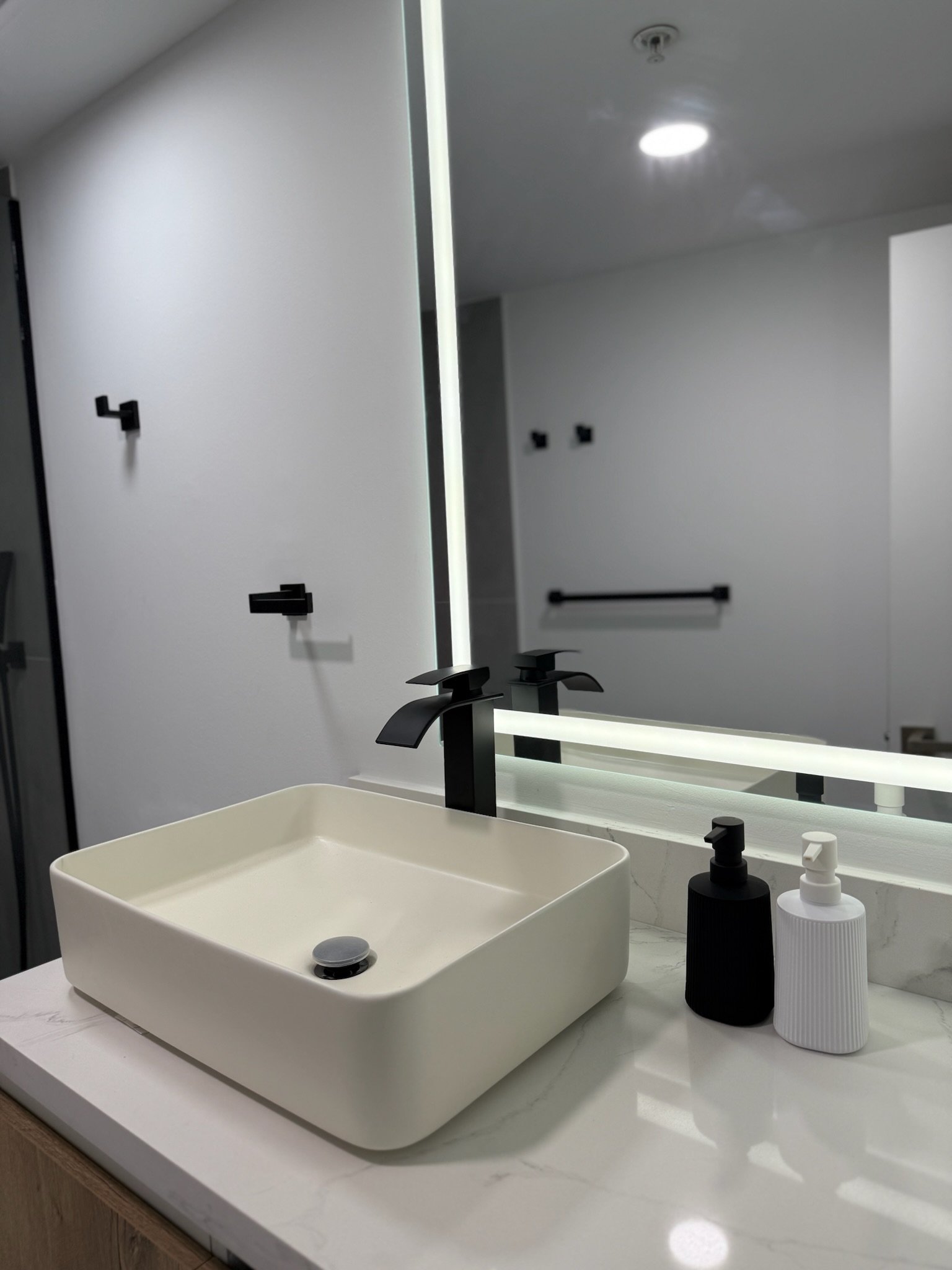 Baño remodelado con acabados premium